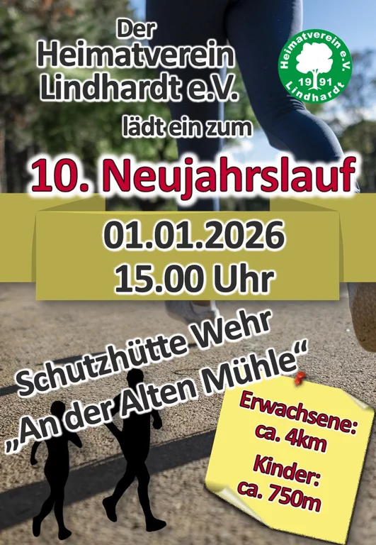 Wir führen für alle Sportbegeisterten wieder den traditionellen Neujahrslauf an der Schutzhütte am Wehr "An der Alten Mühle" durch. Für das leibliche Wohl ist selbstverständlich gesorgt.