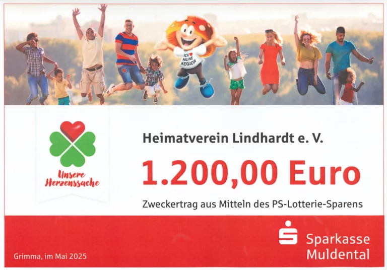 Wir sind überglücklich, von der Sparkasse Muldental eine Förderung für die Erneuerung unserer historischen Tafeln in Lindhardt erhalten zu haben. Dank der Aktion Herzenssache wurde insgesamt eine Spendensumme von rund 35.900 Euro an Sportvereine, Schulen & KiTas und eben auch an uns übergeben. Nun steht den neuen Tafeln nichts mehr im Wege.